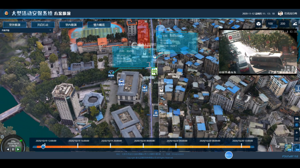 方正国际于去年年底联合用户成立项目专项小组,通过近150个日夜的攻坚研发和不断地实战演练,将业务实战与时空大数据、交通大数据、监控大数据、感知大数据等有效融入治安防控体系,研发并上线了 “大数据+安保” 实战应用系统,保障了多警种、跨区域的合成作战指挥;以一张图、智能化数据采集、流程化预案、可视化合成指挥为四大基础能力,赋能大型活动安保任务,打造集感知可视、情报研判、合成指挥于一体的智能化、规范化、模块化科技安保系统,为领导决策提供支撑。